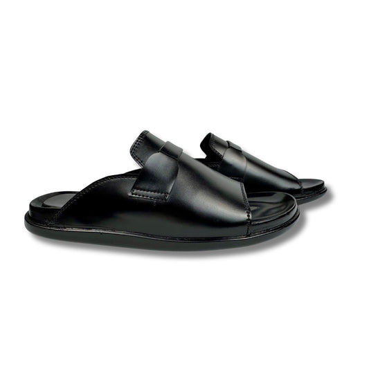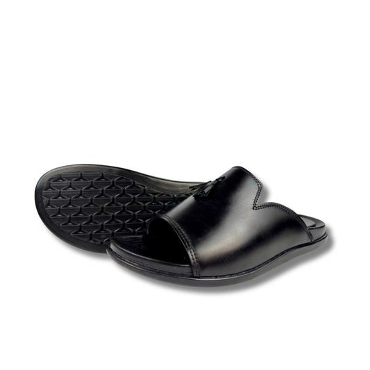 Darwin - Men's Black Pebble Grain Leather Slipper