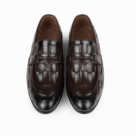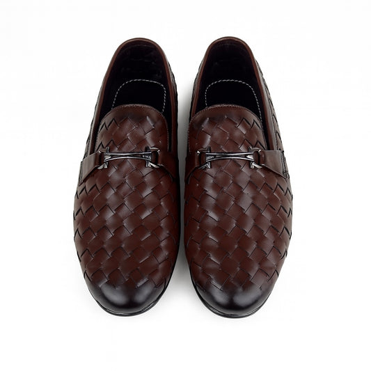 BROWN BRAIDE PURE LEATHER SLIPPER
