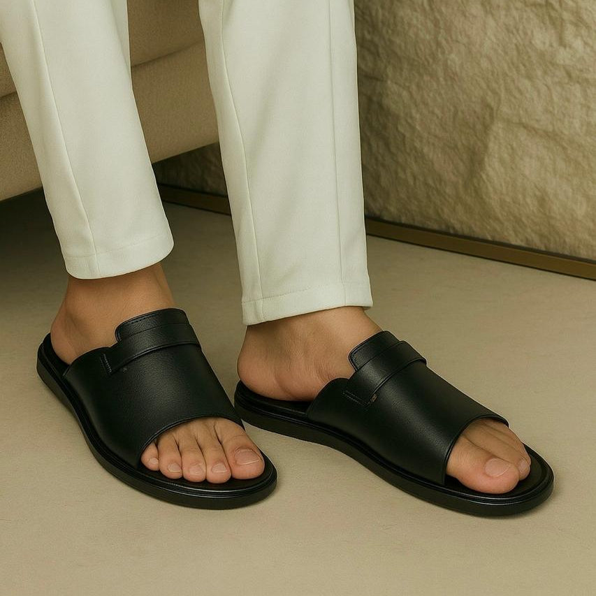 BLACK LEATHER SLIPPER