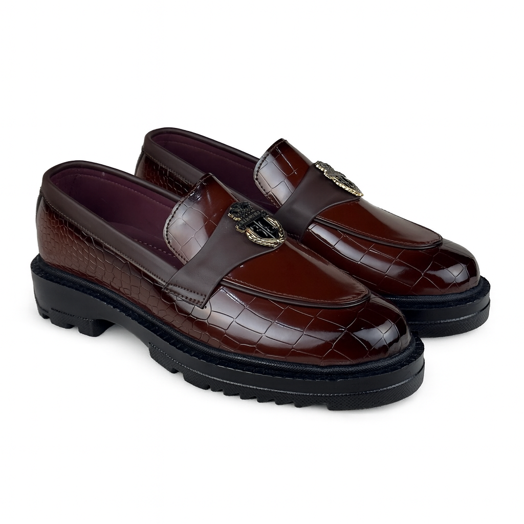 The Billionaire Brown Highsole Patent Loafer by MSK Soles is designed for men who appreciate understated elegance with a touch of modern charm. Crafted from 100% Genuine Leather , this loafer brings together softness, versatility, and class, making it the perfect choice for both smart-casual wear and semi-formal occasions. 🌟