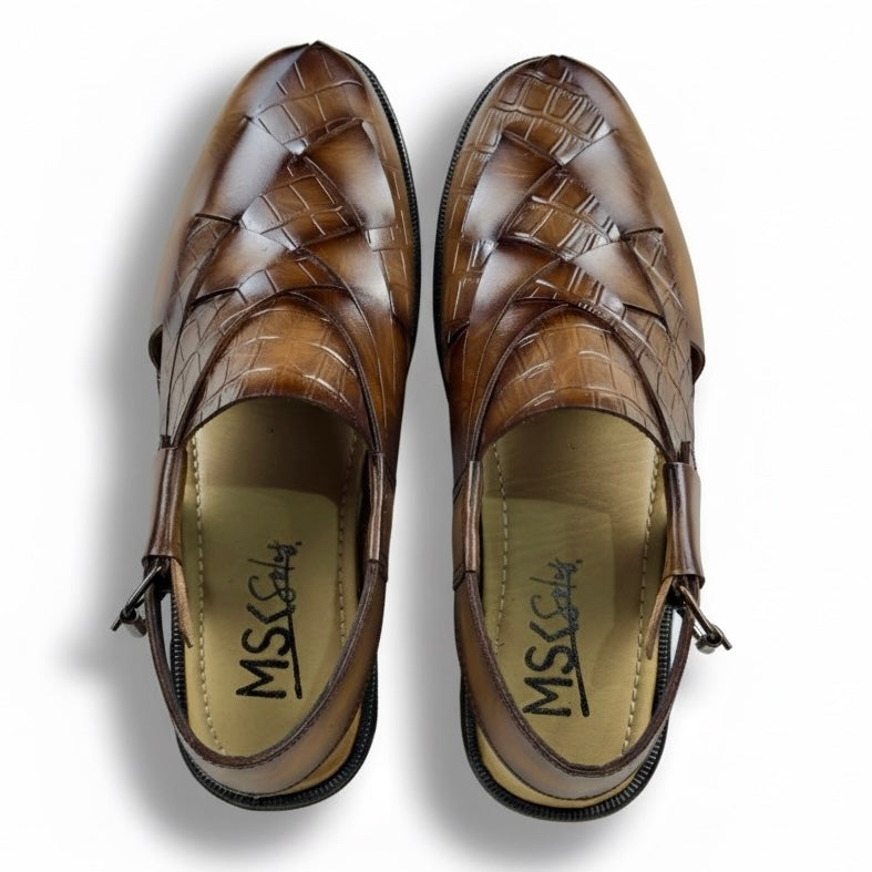 The Croc Babarsher Strap Leather Peshawari Sandal by MSK Soles is a timeless expression of Pakistani heritage, crafted with a modern touch. Made from 100% genuine leather, this sandal delivers unmatched durability, comfort, and cultural style — perfect for both casual wear and formal occasions. 🌟