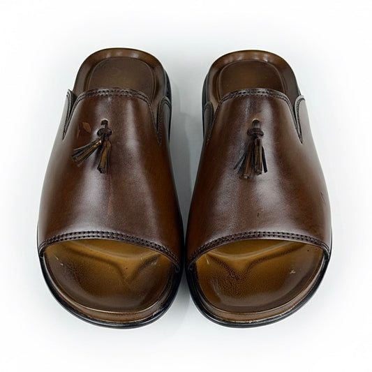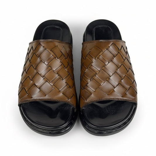 BROWN BRAIDE PURE LEATHER SLIPPER